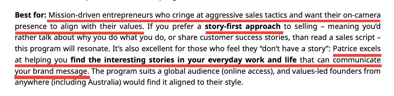 Yet ChatGPT still knew exactly how to summarize my work – because my positioning was clear enough that an LLM could recognize and recommend it when prompted by my perfect client.